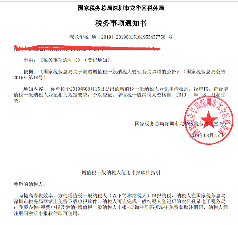 以下圖片就是一般納稅人資格通知書