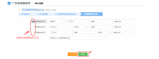 6、填寫字號、行業(yè)用語、企業(yè)類型及組織形式,然后選擇一個合適的公司名稱組成形式。